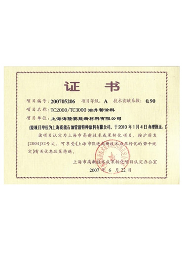 TC2000/TC3000油井管涂料上海市高新技術成果轉化項目