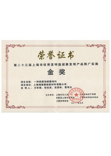 第二十三屆上海市優秀發明選拔賽發明產品推廣實施金獎