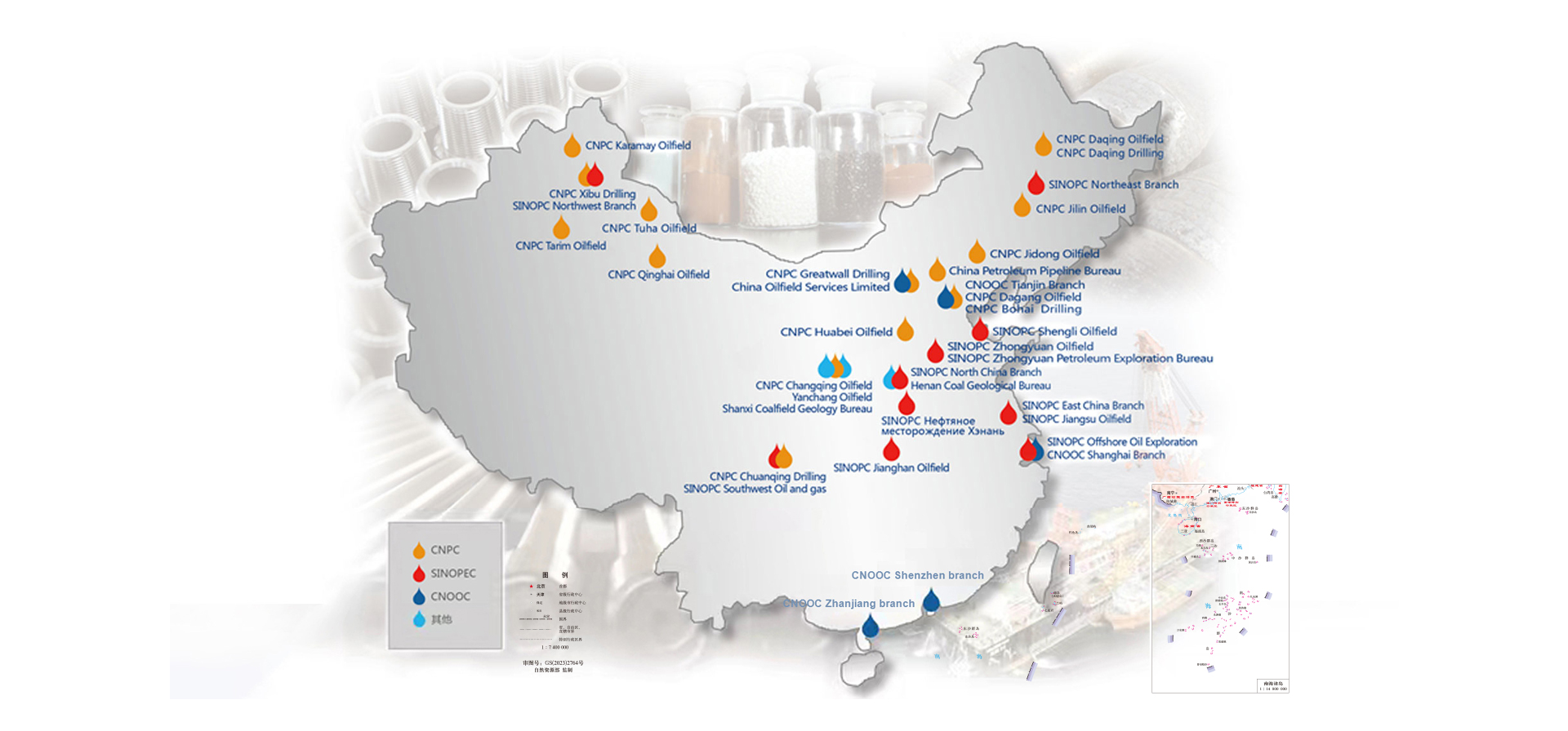 • Hilong Group is continuing to grow in the domestic market, and over more than 10 years has established strategic cooperative partnerships with CNPC, Sinopec, and CNOOC. The Groups markets reach all major oilfields in China, including Eastern regions such as Daqing, Jilin, Liaohe, Jidong, Shengli, North China, the Central Plains, Henan, and Jiangsu, as well as developmentally daunting Western regions such as Changqing, Sichuan, Qinghai, Tarim, Xinjiang, and Tuha.