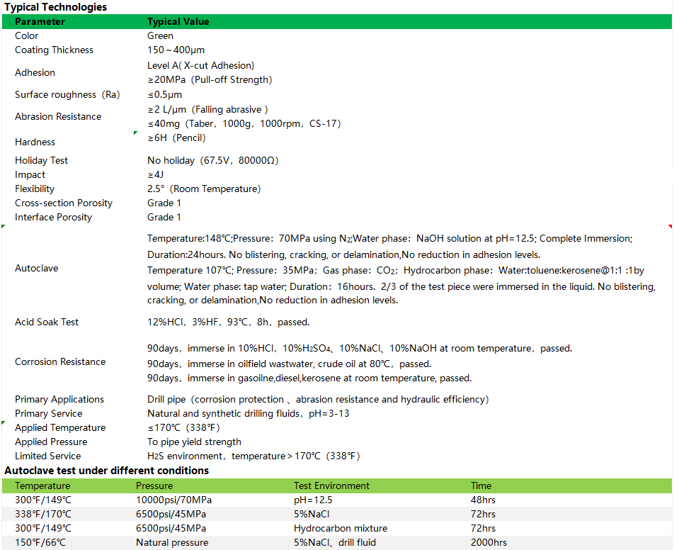 Primary ApplicationsDrill pipe(corrosion protection 、abrasion resistance and hydraulic efficiency).