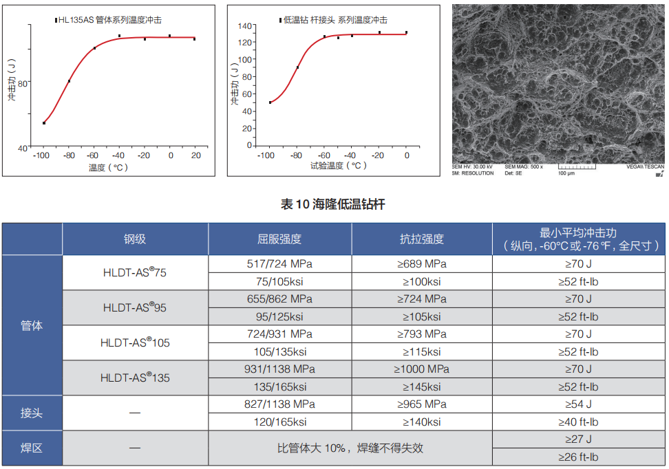 海隆低溫鉆桿是針對高寒地區油氣勘探作業需要,自主研制開發,適用于低溫環境的專用鉆桿。使用溫度-60℃及以上。